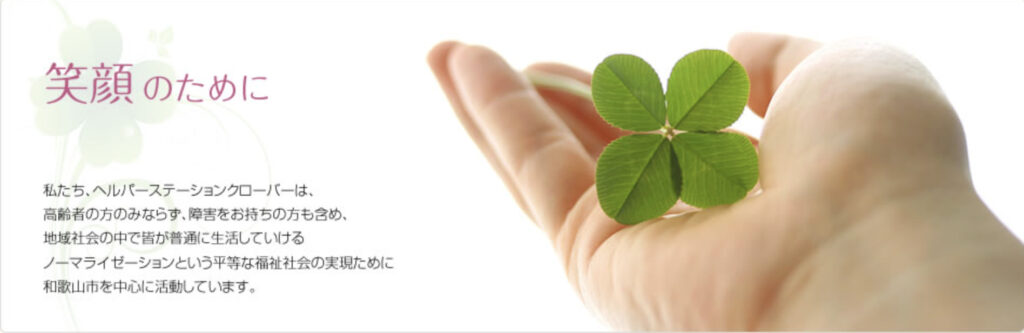 ヘルパーステーションクローバーは、和歌山市を拠点に、訪問介護や居宅介護支援、介護タクシー、障害者支援などの生活支援サービスを提供している介護事業者です。