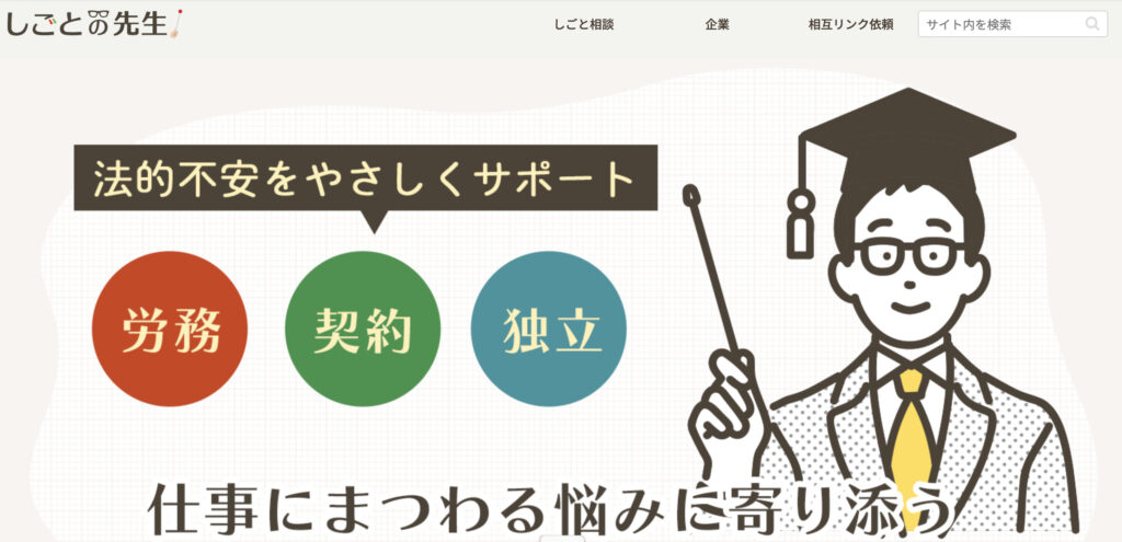 「しごとの先生」は、働く人の悩みや疑問に寄り添う専門情報サイトです。労働問題や雇用契約、転職、独立・起業など、仕事に関する幅広いテーマを扱い、専門家監修のもとで分かりやすく解説しています。